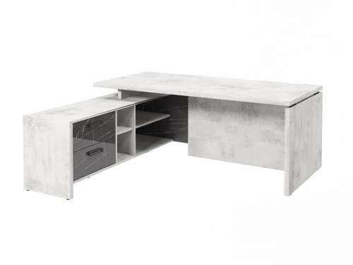 Стол с опорной тумбой FB-119L.GG (L) Хромикс белый/Камень Пьетра Гриджиа черный