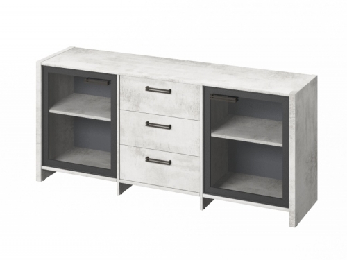 Тумба с 2 дверями в алюминиевом профиле и 3 ящиками.