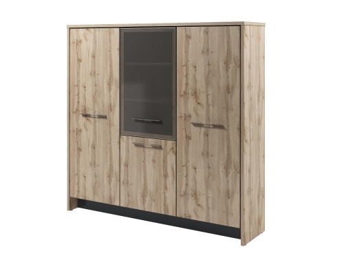 Шкаф может быть в левом и правом исполнении, в зависимости от направления открывания стеклянной и низкой дверей.