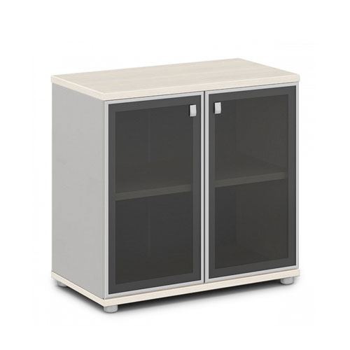 Двери стеклянные, распашные, низкие. Фасады в алюминиевом профиле толщиной 20 мм. Толщина стекла - 4 мм. Высота - 702 мм, крепление на 2-х петлях.